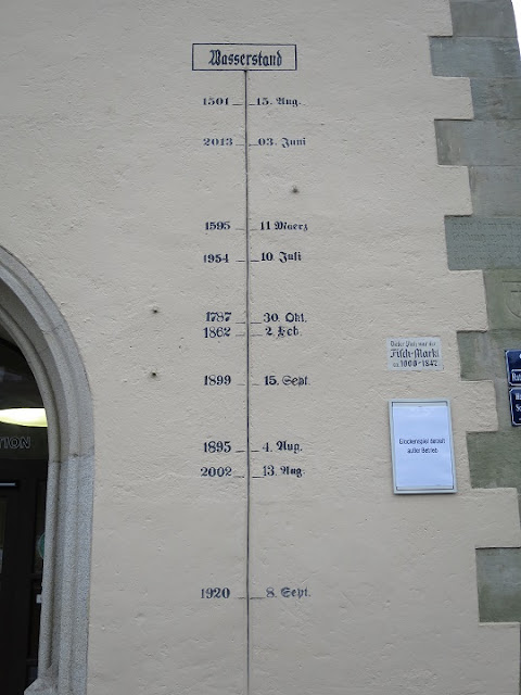 die Hochwasserstände der letzten 500 Jahre am Rathaus...